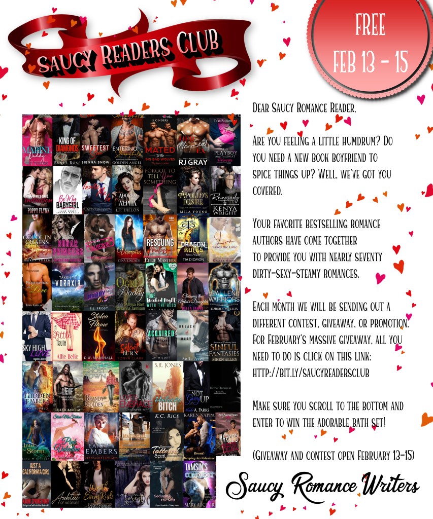 ♥*♡∞:。.。Valentine’s Day GIVEAWAY!。.。:∞♡*♥Calling all Saucy Romance Readers! We have an amazing opportunity to fill your e-reader this ♥Valentine’s Day♥ with FREE romances from your favorite authors. ♡ Learn more: http://bit.ly/saucyreadersclub ♡ Dates Available: Feb 13-15